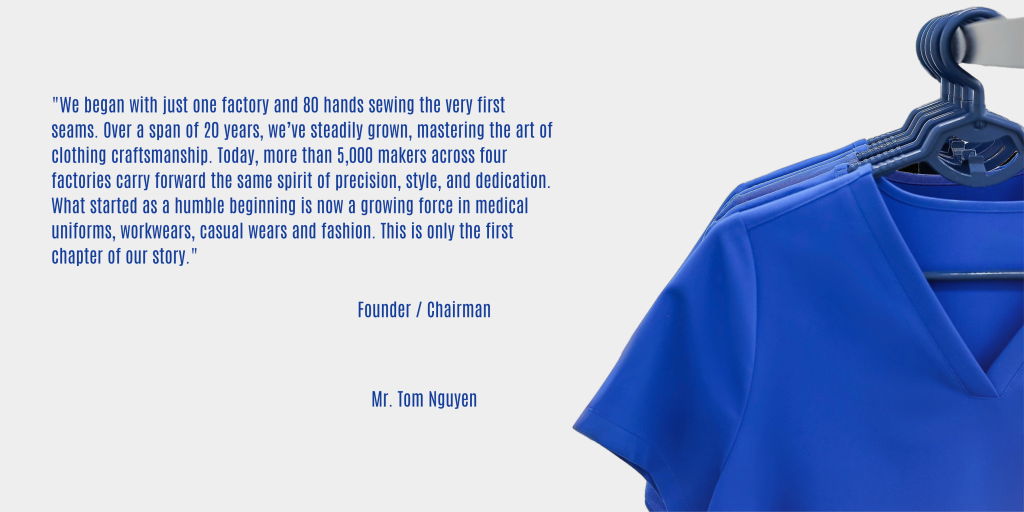 In 2001, we built our very first factory — where we took our first leap to expand our ambition into action. With 2,100 concurrent employees across 25,000 square meters, this facility became the starting line of our journey. Specialising in Medical Uniforms, Casual Wears, Workwears, we quickly became trusted partners with leading names like Walmart, Disney, and Cherokee — carrying our work into their stores in the US and around the world. More than just a building, this factory marked the foundation of our expansion and trust, our vision and experience, setting the benchmark that every one of our posterity factories now upholds